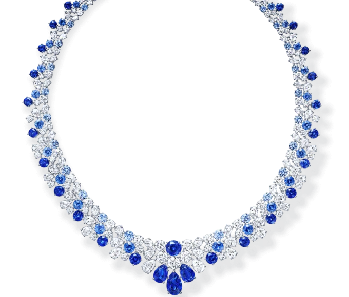 Harry Winston brings to market a sapphire jewelry set for royals, blending oceanic grandeur with impeccable diamond craftsmanship.
