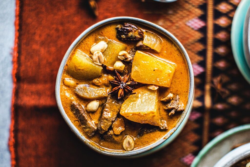 Now, in the Michelin-starred refuges like Sorn in Bangkok, the curry is synesthetic. Wagyu beef replaces the traditional cuts, slow-cooked until so tender it will break apart with a spoon. Cardamom, cinnamon, and star anise with roasted cashews, coconut milk, and palm sugar create a synaesthesia of sweet and spice.