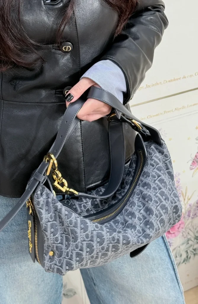 What makes the D-Journey so compelling is that it does not chase drama in the obvious way. Instead, it works through shape, proportion, and attitude. The silhouette takes the familiar language of the hobo bag and refines it into something more sculpted and elevated. There is softness, yes, but also intention. The curved body, the zip details, the leather pull, and the balanced structure give it personality without ever tipping into excess. It is the kind of bag that looks just as convincing with relaxed daywear as it does with sharply tailored evening layers.