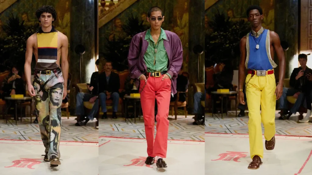 Accessories caught up too: the sculpted heels were liquid glass-inspired, the clutch bags were in the shape of hard drives, and the reflective visors were plucked straight from a space-age dream. Even the Medusa logo was reimagined in transparent crystal, symbolising Versace’s bold entry into a new era of style.
