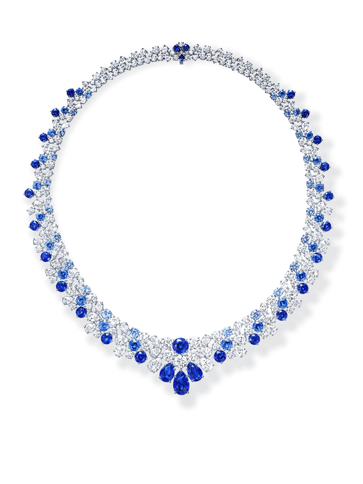 Harry Winston brings to market a sapphire jewelry set for royals, blending oceanic grandeur with impeccable diamond craftsmanship.