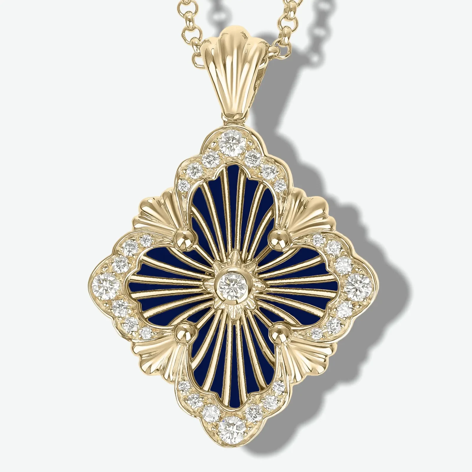 Drawing on the motifs of Renaissance architecture and lace, each piece forms a masterpiece of texture, light, and balance. In yellow and white gold, with extensive engraving called “rigato,” the Opera Collection includes pendants, rings, and earrings that would appear to be woven out of light. Every curve and cut is handmade in the workshops of Milan, keeping alive techniques dating back a century.