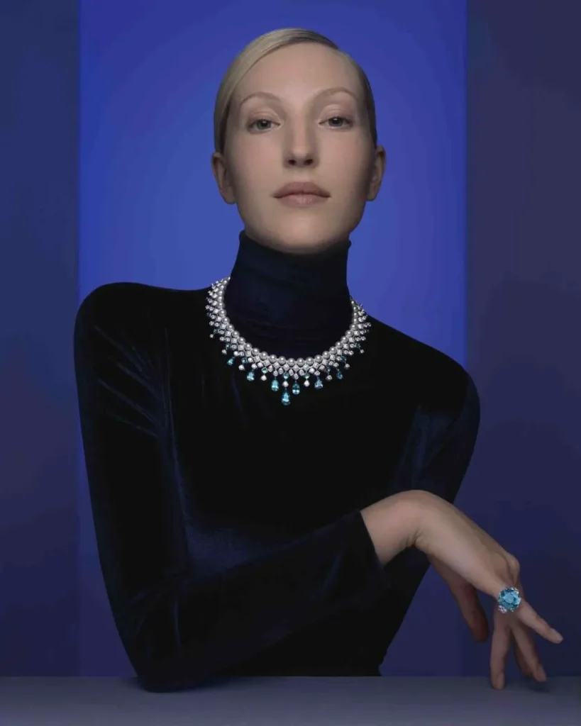 The Azureia Necklace is the pièce de résistance that seems almost alive with energy, an evocation of flowing rivers realised in blue sapphire and diamond artistry.