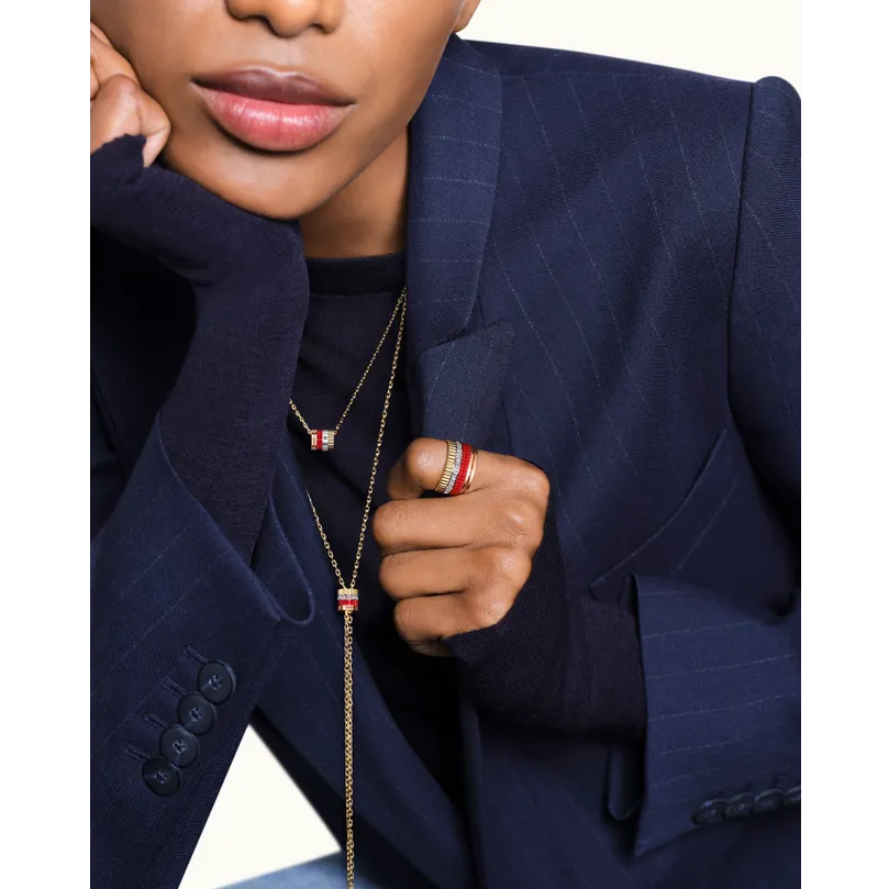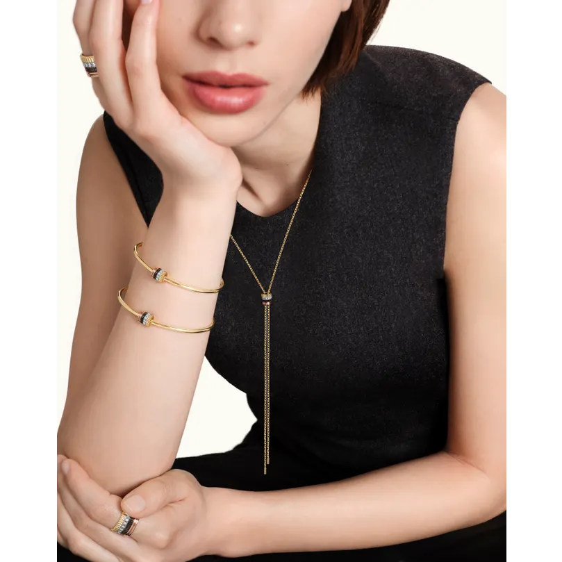 Visually, Quatre Classique has a confidence that feels very current. The stacked geometry, mixed tones, and clean architectural composition make it ideal for the collector who prefers her jewellery bold but disciplined. It does not rely on floral softness or conventional romantic cues. Instead, it expresses strength through line and code. That gives it a sharp editorial energy that works beautifully in both fashion and fine jewellery contexts.