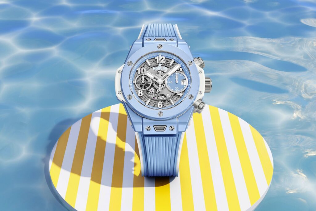 The sapphire version of Hublot’s Big Bang Unico Blue Sapphire transforms transparency into luxury, with a timepiece that traps light, innovation, and modern boldness.