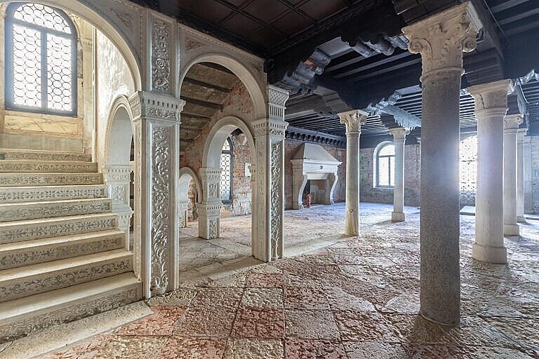 The external part, faced with pink Verona marble and Istrian stone, shines as brightly as a mosaic over the canal. Inside, rooms are lined with frescoes, gilded ceilings, and Venetian chandeliers that have illuminated noble gatherings for over 500 years.